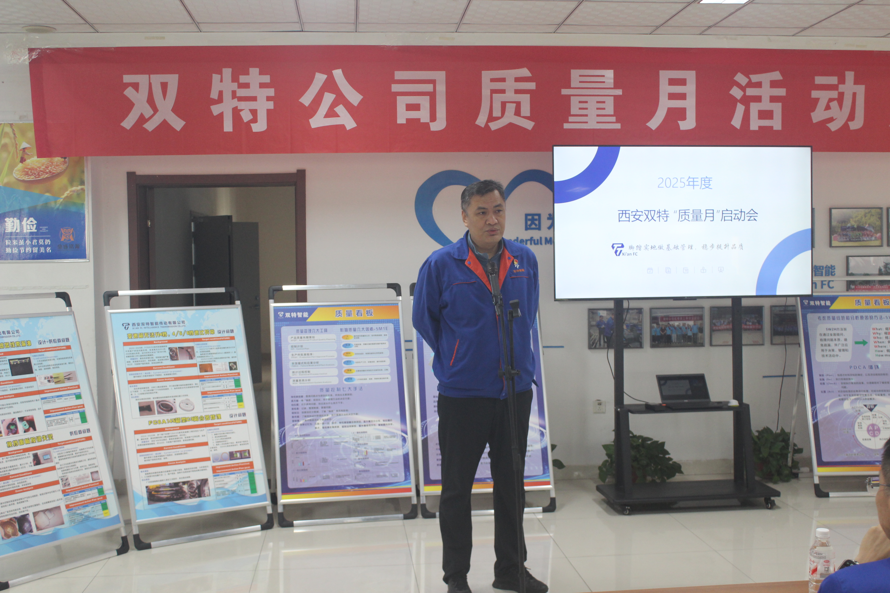 启动仪式上,总经理赵会强发表致辞并作动员讲话。他指出,质量是企业的生命线,是品牌塑造的根本保障。全体人员要以“质量月”为契机,将质量管控摆在首位,朝着“零缺陷”的目标持续迈进,努力将双特品牌打造成为客户心中的“首选”品牌。
