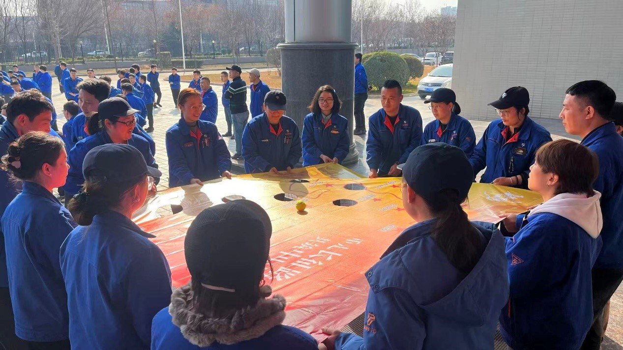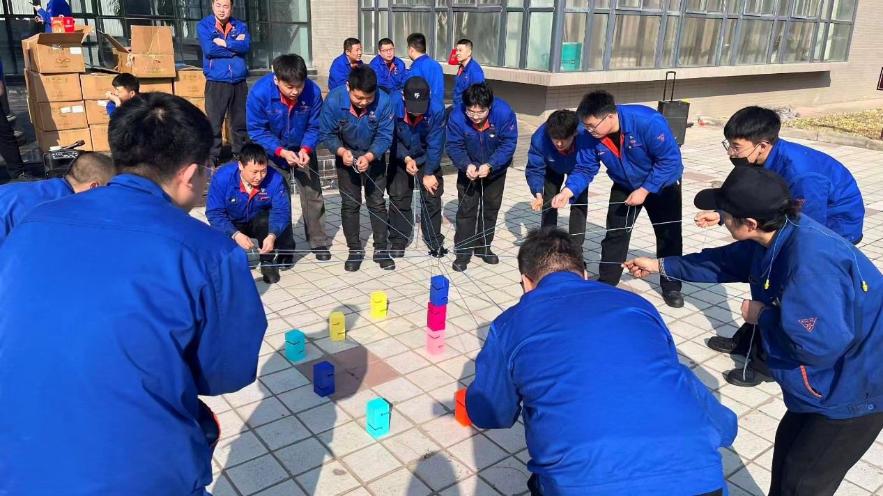 本次迎春运动会设置了同心鼓、重走长征路、合力建塔三个兼具趣味性与协作性的团体项目。在“同心鼓”项目现场,每组队员精准控制鼓面起伏,让小球一次次轻盈颠起、平稳回落,完美诠释了其利断金的团队力量。